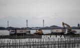 Alat berat mengeruk tanah pada proyek pembangunan Kolam Retensi Terboyo di Semarang, Jawa Tengah, Ahad (2/11/2025). Kementerian PU membangun Kolam Retensi Terboyo sebagai upaya penanganan banjir di wilayah Pantura Semarang–Demak dengan kapasitas volume tampung sebesar 6,7 juta meter kubik dan hingga 25 Oktober 2025 progres pembangunannya telah mencapai 40,86 persen. (FOTO : ANTARA FOTO/Aprillio Akbar)