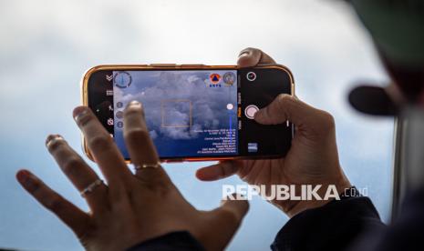 Seorang ilmuwan penerbangan mendokumentasikan kondisi awan sebagai bahan laporan pelaksanaan Operasi Modifikasi Cuaca (OMC) menggunakan pesawat Cessna 208 Caravan PK-SNM BNPB di sekitar wilayah udara pesisir utara Kabupaten Pati, Jawa Tengah, Ahad (2/11/2025). Hingga hari kesembilan atau per Ahad (2/11) penerbangan kedua, BNPB bersama Badan Meteorologi Klimatologi dan Geofisika (BMKG) menghabiskan sebanyak 31 ton NaCl dan 14 ton CaO untuk OMC Jateng dalam rangka penanganan dan mitigasi bencana hidrometeorologi basah di wilayah Kota Semarang dan sekitarnya. (FOTO : ANTARA FOTO/Aji Styawan)