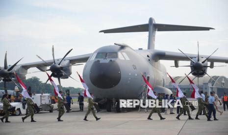 Pesawat angkut Airbus A400M pertama yang tiba dari dua unit yang dipesan Pemerintah Indonesia merupakan alutsista TNI Angkatan Udara yang dapat mengangkut barang berdimensi besar.
