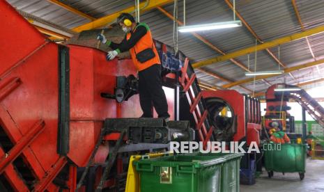 Petugas Dinas Lingkungan Hidup beraktivitas di Tempat Pengolahan Sampah Reduce, Reuse, Recycle (TPS3R) Rawasari, Jakarta, Senin (3/11/2025). TPS3R Rawasari mengolah rata-rata 12 ton sampah setiap hari yang berasal dari wilayah Kelurahan Rawasari, Cempaka Putih Timur, dan Cempaka Putih Barat. Dari total sampah yang masuk sekitar 12–15 ton per hari, sebanyak 2,5 hingga 3 ton hasil sampah cacahan dikirim ke fasilitas Refuse Derived Fuel (RDF) Rorotan untuk kemudian diolah kembali menjadi bahan bakar alternatif ramah lingkungan. Fasilitas TPS3R ini merupakan bagian dari upaya Pemerintah Provinsi DKI Jakarta untuk mengurangi volume sampah yang dibawa ke Tempat Pembuangan Akhir (TPA) Bantargebang. (FOTO : Republika/Prayogi)