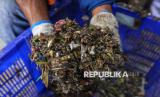 Petugas Dinas Lingkungan Hidup menunjukkan sampah yang telah diolah di Tempat Pengolahan Sampah Reduce, Reuse, Recycle (TPS3R) Rawasari, Jakarta, Senin (3/11/2025). TPS3R Rawasari mengolah rata-rata 12 ton sampah setiap hari yang berasal dari wilayah Kelurahan Rawasari, Cempaka Putih Timur, dan Cempaka Putih Barat. Dari total sampah yang masuk sekitar 12–15 ton per hari, sebanyak 2,5 hingga 3 ton hasil sampah cacahan dikirim ke fasilitas Refuse Derived Fuel (RDF) Rorotan untuk kemudian diolah kembali menjadi bahan bakar alternatif ramah lingkungan. Fasilitas TPS3R ini merupakan bagian dari upaya Pemerintah Provinsi DKI Jakarta untuk mengurangi volume sampah yang dibawa ke Tempat Pembuangan Akhir (TPA) Bantargebang. (FOTO : Republika/Prayogi)