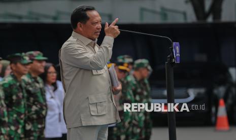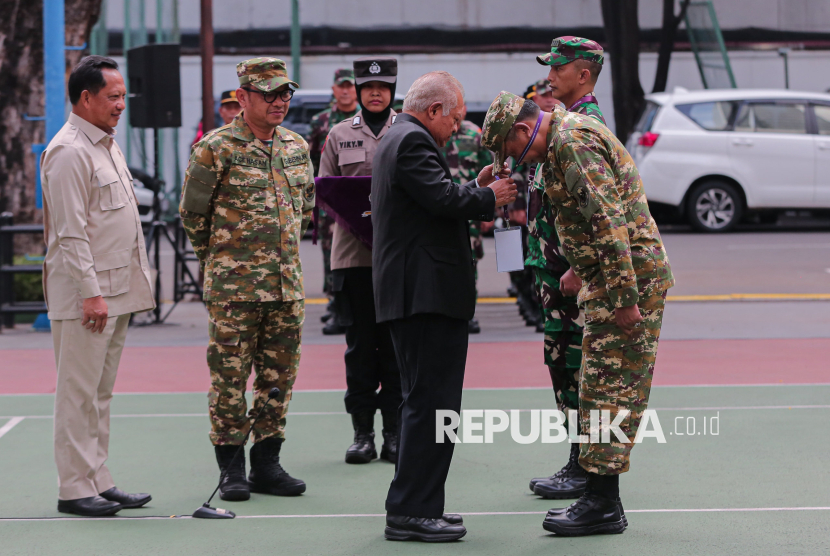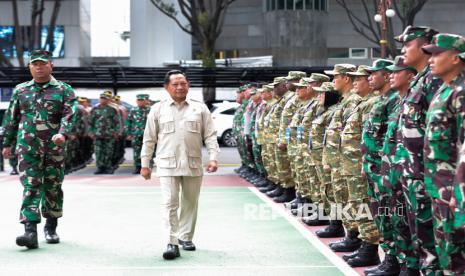 Menteri Dalam Negeri Tito Karnavian melakukan pemeriksaan pasukan pada Upacara Pembukaan Kursus Pemantapan Pimpinan Daerah (KPPD) Angkatan II Tahun 2025 Lemhannas di Jakarta, Rabu (5/11/2025). KPPD Angkatan II Tahun 2025 Lemhannas berlangsung dari 5-18 November 2025 dan diikuti oleh 25 Bupati/Wali Kota yang bertujuan untuk mewujudkan pimpinan tingkat daerah yang bermoral, beretika, berkarakter kebangsaan serta memahami empat konsensus dasar bangsa meliputi Pancasila, UUD 1045, NKRI dan Bhinneka Tunggal Ika. (FOTO : Republika/Thoudy Badai)