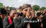 Kerabat dan abdi dalem menempelkan kedua tangannya ketika mengiringi kereta jenazah Raja Keraton Kasunanan Surakarta Hadiningrat Sri Susuhunan Paku Buwana (PB) XIII di Solo, Jawa Tengah, Rabu (5/11/2025). Paku Buwana XIII meninggal dunia pada usia 77 tahun dan akan dimakamkan di Astana Raja-raja Mataram Imogiri, Yogyakarta. (FOTO : ANTARA FOTO/Mohammad Ayudha)