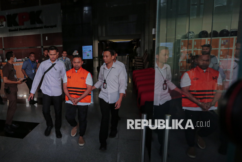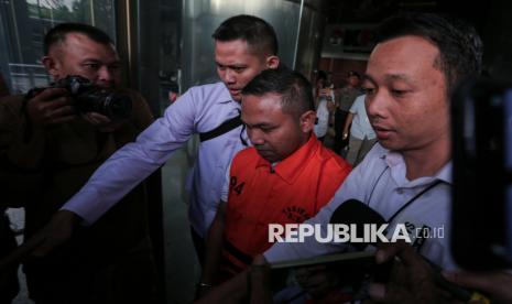 Tersangka Gubernur Provinsi Riau Abdul Wahid mengenakan rompi tahanan usai dihadirkan dalam konferensi pers pengumuman penetapan dan penahanan tersangka di Gedung Merah Putih KPK, Jakarta, Rabu (5/11/2025). KPK secara resmi menetapkan sekaligus menahan tiga tersangka dalam kegiatan tangkap tangan terkait dugaan tindak pidana korupsi di Pemerintah Provinsi Riau tahun anggaran 2025. (FOTO : Republika/Thoudy Badai)