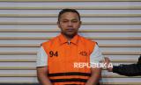 Tersangka Gubernur Provinsi Riau Abdul Wahid mengenakan rompi tahanan saat dihadirkan dalam konferensi pers pengumuman penetapan dan penahanan tersangka di Gedung Merah Putih KPK, Jakarta, Rabu (5/11/2025). (FOTO : Republika/Thoudy Badai)