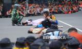 REPUBLIKA.CO.ID, BANDUNG -- Petugas gabungan mengikuti simulasi penanganan bencana saat Apel Gelar Pasukan Siaga Tanggap Bencana Polda Jabar Tahun 2025, di depan Gedung Sate, Jalan Diponegoro, Kota Bandung, Rabu (5/11/2025).