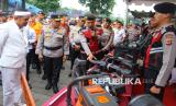 Gubernur Jawa Barat (Jabar) Dedi Mulyadi bersama Kapolda Jabar Irjen Pol Rudi Setiawan meninjau perlengkapan pasukan saat Apel Gelar Pasukan Siaga Tanggap Bencana Polda Jabar Tahun 2025, di depan Gedung Sate, Jalan Diponegoro, Kota Bandung, Rabu (5/11/2025). Kegiatan tersebut sebagai antisipasi menghadapi kemungkinan terjadinya potensi bencana hidrometeorologi di Jabar. (FOTO : Edi Yusuf)