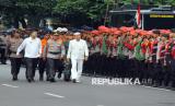 Gubernur Jawa Barat (Jabar) Dedi Mulyadi bersama Kapolda Jabar Irjen Pol Rudi Setiawan dan Wakil Gubernur Erwan Setiawan meninjau pasukan saat Apel Gelar Pasukan Siaga Tanggap Bencana Polda Jabar Tahun 2025, di depan Gedung Sate, Jalan Diponegoro, Kota Bandung, Rabu (5/11/2025). Kegiatan tersebut sebagai antisipasi menghadapi kemungkinan terjadinya potensi bencana hidrometeorologi di Jabar. (FOTO : Edi Yusuf)