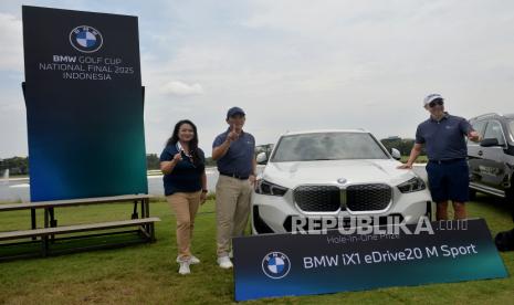 President Director BMW Group Indonesia Peter Medalla (kedua kiri) bersama Managing Director BMW Group Asia Lars Nielsen (kanan) dan Director of Communications BMW Group Indonesia Jodie O Tania saat membuka BMW Golf Cup National Final 2025 di Damai Indah Golf PIK di Jakarta, Rabu (5/11/ 2025). Sebanyak 144 pegolf dari seluruh Indonesia berpartisipasi dalam BMW Golf Cup National Final 2025. Tiga pemenang dari turnamen ini akan mewakili Indonesia di Fancourt, Afrika Selatan, tahun depan. BMW Golf Cup merupakan turnamen golf amatir terbesar di dunia. Kompetisi ini mencakup lebih dari 1.500 turnamen regional di lebih dari 30 negara, dengan lebih dari 100.000 pegolf amatir berpartisipasi setiap tahunnya. (FOTO : Dok Republika)