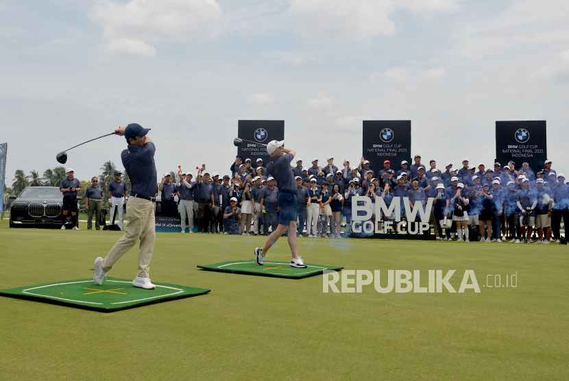 President Director BMW Group Indonesia Peter Medalla (kiri) bersama Managing Director BMW Group Asia Lars Nielsen membuka BMW Golf Cup National Final 2025 di Damai Indah Golf PIK di Jakarta, Rabu (5/11/ 2025). Sebanyak 144 pegolf dari seluruh Indonesia berpartisipasi dalam BMW Golf Cup National Final 2025. Tiga pemenang dari turnamen ini akan mewakili Indonesia di Fancourt, Afrika Selatan, tahun depan. BMW Golf Cup merupakan turnamen golf amatir terbesar di dunia. Kompetisi ini mencakup lebih dari 1.500 turnamen regional di lebih dari 30 negara, dengan lebih dari 100.000 pegolf amatir berpartisipasi setiap tahunnya. (FOTO : Dok Republika)