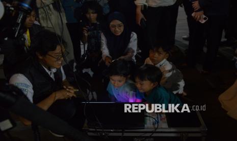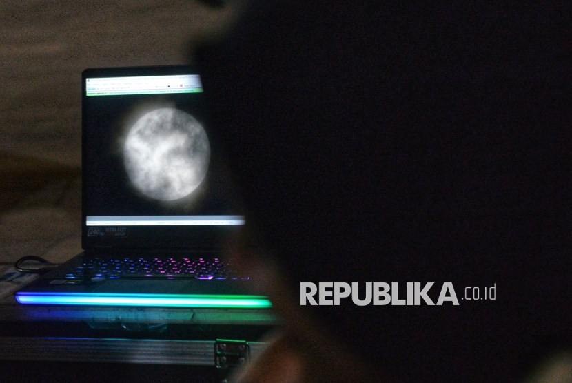 Pengunjung mengamati layar laptop yang tersambung dengan teleskop yang mengamati Bulan Purnama yang tampak besar atau Supermoon di Taman Ismail Marzuki, Jakarta, Rabu (5/11/2025). Planetarium dan Observatorium Jakarta menggelar kegiatan Piknik Malam Bersama Supermoon serta membuka kesempatan bagi masyarakat untuk menyaksikan fenomena ini melalui teleskop. Dalam kegiatan seru tersebut, peserta terpilih juga berkesempatan mengikuti talkshow astronomi dan menyaksikan pertunjukan Planetarium Mini. Berdasarkan perhitungan astronomis, Bulan Purnama pada 5 November ini bertepatan dengan titik terdekat Bulan terhadap Bumi (perigee). Hal ini menjadikannya Bulan Purnama terbesar tahun ini, atau yang dikenal dengan sebutan Supermoon. Bulan Purnama tersebut tampak sekitar 15 persen lebih terang dan 7 persen lebih besar dibandingkan Bulan Purnama biasa. (FOTO : Republika/Prayogi)
