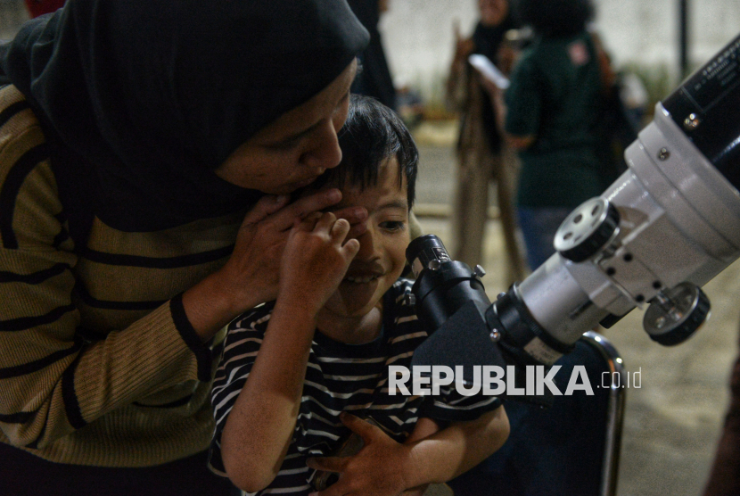 REPUBLIKA.CO.ID, JAKARTA -- Pengunjung dengan menggunakan teleskop mengamati Bulan Purnama yang tampak besar atau Supermoon di Taman Ismail Marzuki, Jakarta, Rabu (5/11/2025).