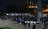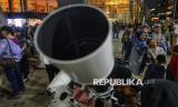 Pengunjung mengantri untuk mengamati Bulan Purnama yang tampak besar atau Supermoon dengan teleskop di Taman Ismail Marzuki, Jakarta, Rabu (5/11/2025). Planetarium dan Observatorium Jakarta menggelar kegiatan Piknik Malam Bersama Supermoon serta membuka kesempatan bagi masyarakat untuk menyaksikan fenomena ini melalui teleskop. Dalam kegiatan seru tersebut, peserta terpilih juga berkesempatan mengikuti talkshow astronomi dan menyaksikan pertunjukan Planetarium Mini. Berdasarkan perhitungan astronomis, Bulan Purnama pada 5 November ini bertepatan dengan titik terdekat Bulan terhadap Bumi (perigee). Hal ini menjadikannya Bulan Purnama terbesar tahun ini, atau yang dikenal dengan sebutan Supermoon. Bulan Purnama tersebut tampak sekitar 15 persen lebih terang dan 7 persen lebih besar dibandingkan Bulan Purnama biasa. (FOTO : Republika/Prayogi)
