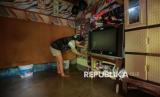 Warga beraktivitas saat banjir rob menggenangi permukimannya di kawasan Muara Angke, Jakarta Utara, Kamis (6/11/2025). Potensi banjir rob di Jakarta Utara tersebut disebabkan oleh adanya fenomena fase perigee dan bulan purnama yang dapat menyebabkan air laut pasang. (FOTO : Republika/Thoudy Badai)