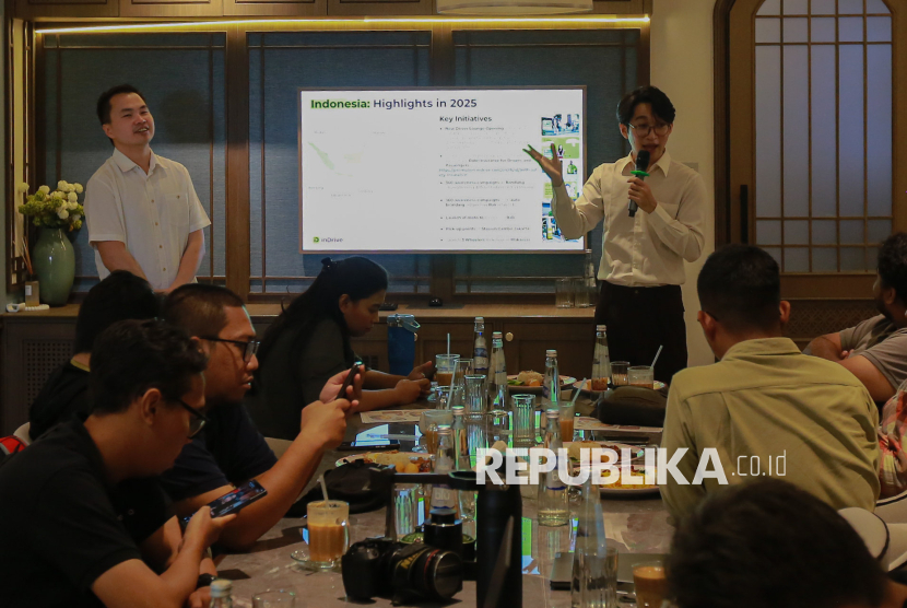Suasana konferensi pers Rencana Strategis inDrive di Jakarta, Kamis (6/11/2025). Perusahaan teknologi yang berfokus pada layanan mobilitas inDrive berkomitmen meningkatkan inovasi layanan, penguatan pengalaman pengguna serta perluasan program kemitraan lokal dan inisiatif sosial seiring dengan pengangkatan Rio Aristi sebagai Country Manager inDrive Indonesia. (FOTO : Republika/Thoudy Badai)
