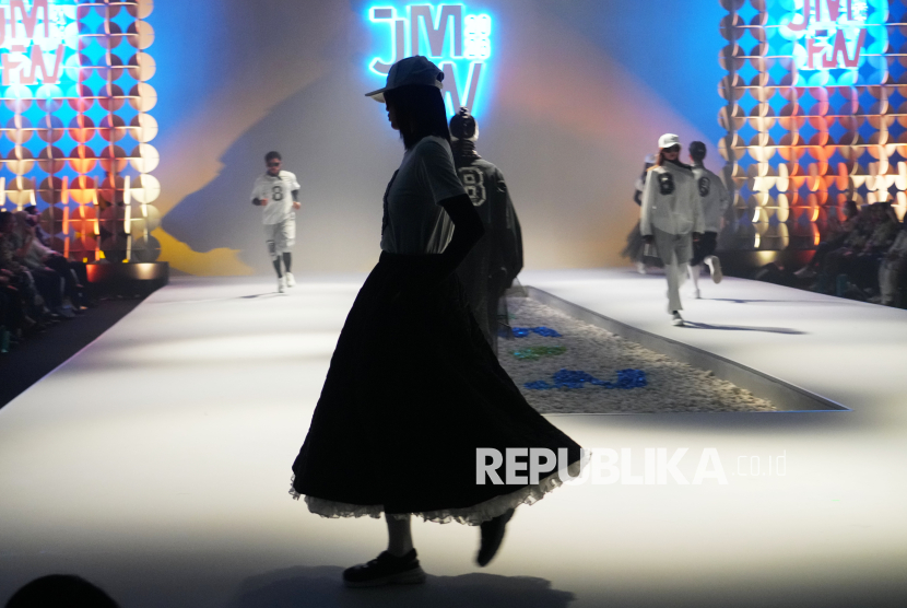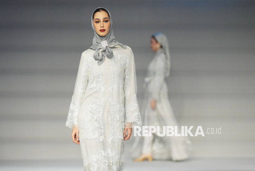 REPUBLIKA.CO.ID, JAKARTA -- Model memperagakan busana muslim karya perancang mode Dama Kara pada acara Jakarta Muslim Fashion Week (JMFW) 2026 di Balai Kartini, Jakarta, Kamis (6/11/2025).