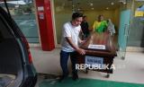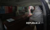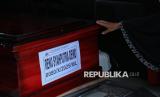 Keluarga mengambil peti jenazah Muhammad Farhan di ruang Instalasi Kedokteran Forensik RS Polri, Jakarta, Sabtu (8/11/2025). Polda Metro Jaya mengungkapkan dua kerangka manusia yang ditemukan di Gedung Astra Credit Companies (ACC) yang terbakar adalah Reno Syahputra Dewo dan Muhammad Farhan yang sebelumnya dinyatakan hilang pascaaksi demontrasi pada 29 Agustus lalu di Kwitang setelah dilakukan kecocokan DNA. Reno dan Farhan diduga meninggal karena menjadi korban kebakaran di gedung tersebut. Dua jenazah tersebut saat ini telah diserahkan kepada pihak keluarga dan akan dimakamkan di Surabaya, sementara jenazah Muhammad Farhan akan dimakamkan di Tanjung Priok, Jakarta. (FOTO : Republika/Thoudy Badai)