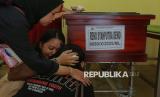 Keluarga menangis di samping peti jenazah Reno Syahputra Dewo di ruang Instalasi Kedokteran Forensik RS Polri, Jakarta, Sabtu (8/11/2025). Polda Metro Jaya mengungkapkan dua kerangka manusia yang ditemukan di Gedung Astra Credit Companies (ACC) yang terbakar adalah Reno Syahputra Dewo dan Muhammad Farhan yang sebelumnya dinyatakan hilang pascaaksi demontrasi pada 29 Agustus lalu di Kwitang setelah dilakukan kecocokan DNA. Reno dan Farhan diduga meninggal karena menjadi korban kebakaran di gedung tersebut. Dua jenazah tersebut saat ini telah diserahkan kepada pihak keluarga dan akan dimakamkan di Surabaya, sementara jenazah Muhammad Farhan akan dimakamkan di Tanjung Priok, Jakarta. (FOTO : Republika/Thoudy Badai)