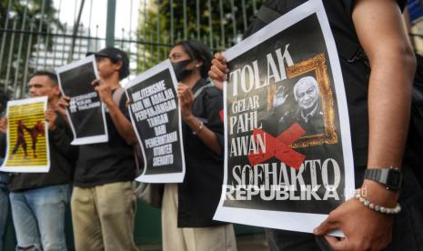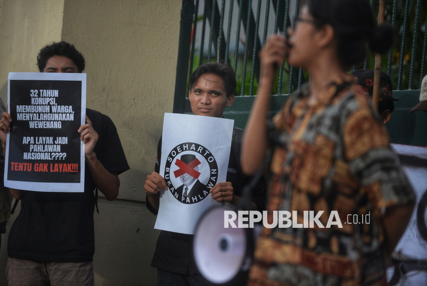 Pengunjuk rasa menilai Soeharto tidak layak menerima gelar pahlawan nasional.