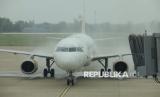 REPUBLIKA.CO.ID, KEDIRI -- Pesawat Super Air Jet mendapatkan guyuran air saat tradisi water salute atau penyambutan pesawat saat penerbangan perdana di Bandara Dhoho Kediri, Jawa Timur, Senin (10/11/2025).