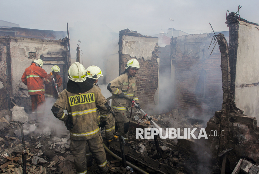 REPUBLIKA.CO.ID, JAKARTA -- Petugas Dinas Penanggulangan Kebakaran dan Penyelamatan (Gulkarmat) melakukan pemadaman api di permukiman padat penduduk Tambora, Jakarta, Selasa (11/11/2025).