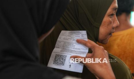 Warga melakuan verifikasi data untuk mengambil bantuan pangan di Sekretariat RW 03 Menteng, Jakarta, Rabu (12/11/2025). Badan Pangan Nasional (Bapanas) bersama Perum Bulog resmi memulai penyaluran Bantuan Pangan (Banpang) beras dan Minyakita untuk periode Oktober–November 2025. Warga penerima bantuan pangan masing-masing mendapatkan 20 kilogram beras dan 4 liter minyak goreng untuk dua bulan. Program Banpang beras dan Minyakita menjadi salah satu instrumen penting pemerintah dalam menjaga stabilitas pangan nasional. Program tersebut juga memperkuat daya tahan sosial masyarakat berpendapatan rendah di berbagai daerah. (FOTO : Republika/Prayogi)