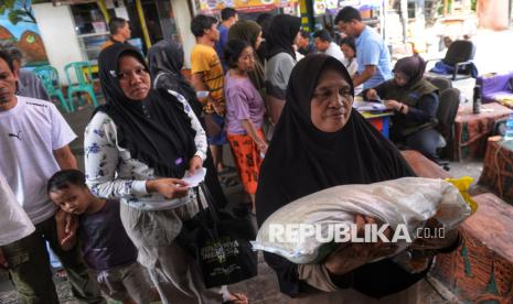 REPUBLIKA.CO.ID, JAKARTA -- Warga mengambil bantuan pangan di Sekretariat RW 03 Menteng, Jakarta, Rabu (12/11/2025).