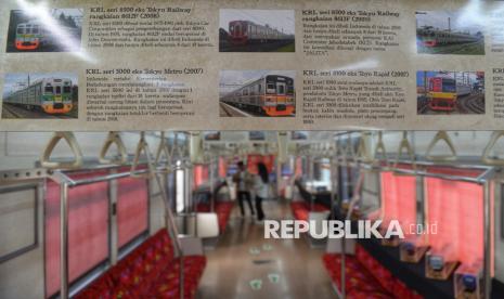 Pengunjung berada di rangkaian KRL Seri 8500 atau juga dikenal sebagai JALITA (Jalan-Jalan Lintas Jakarta) yang dimanfaatkan sebagai Mini Museum di Stasiun Jakarta Kota, Rabu (12/11/2025). Tiga seri KRL eks Jepang yang telah mengabdi sejak tahun 2006 dan 2010, kini resmi memasuki masa purna tugas. (FOTO : Republika/Prayogi)