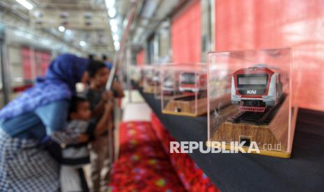 Pengunjung mengamati miniatur kereta yang dipajang dalam Mini Museum di Stasiun Jakarta Kota, Rabu (12/11/2025). Mini Museum yang memanfaatkan rangkaian KRL Seri 8500 atau juga dikenal sebagai JALITA (Jalan-Jalan Lintas Jakarta) ini dihadirkan dalam rangka perpisahan KRL Seri 7000, Seri 8500, dan Seri 203. (FOTO : Republika/Prayogi)