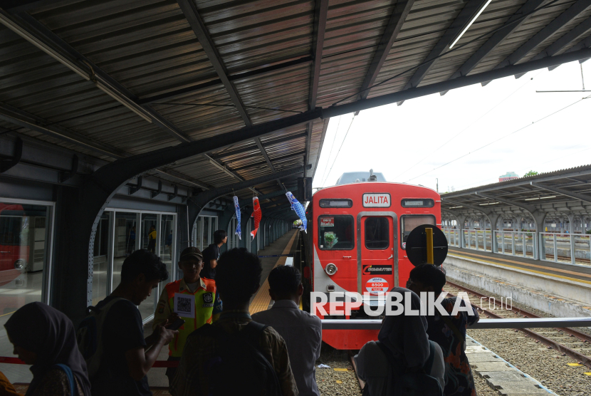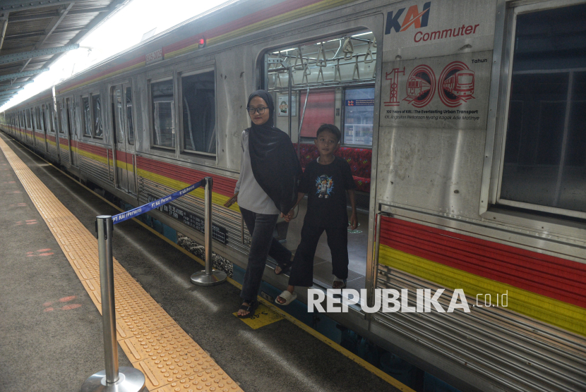 Pengunjung menuruni rangkaian KRL Seri 8500 atau juga dikenal sebagai JALITA (Jalan-Jalan Lintas Jakarta) yang dimanfaatkan sebagai Mini Museum di Stasiun Jakarta Kota, Rabu (12/11/2025). Mini Museum yang memanfaatkan rangkaian KRL Seri 8500 atau juga dikenal sebagai JALITA (Jalan-Jalan Lintas Jakarta) ini dihadirkan dalam rangka perpisahan KRL Seri 7000, Seri 8500, dan Seri 203. (FOTO : Republika/Prayogi)