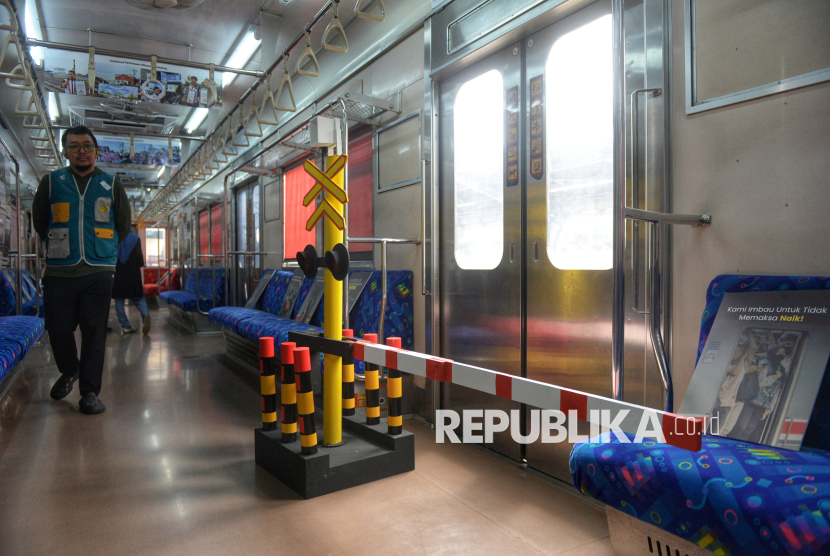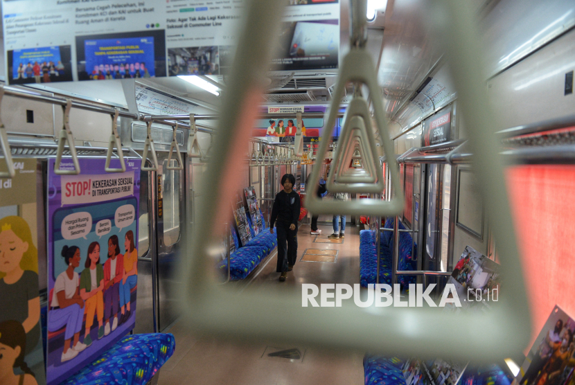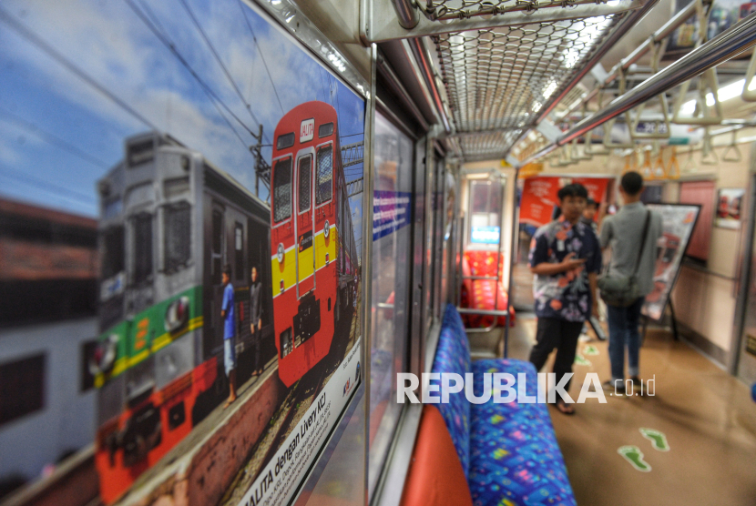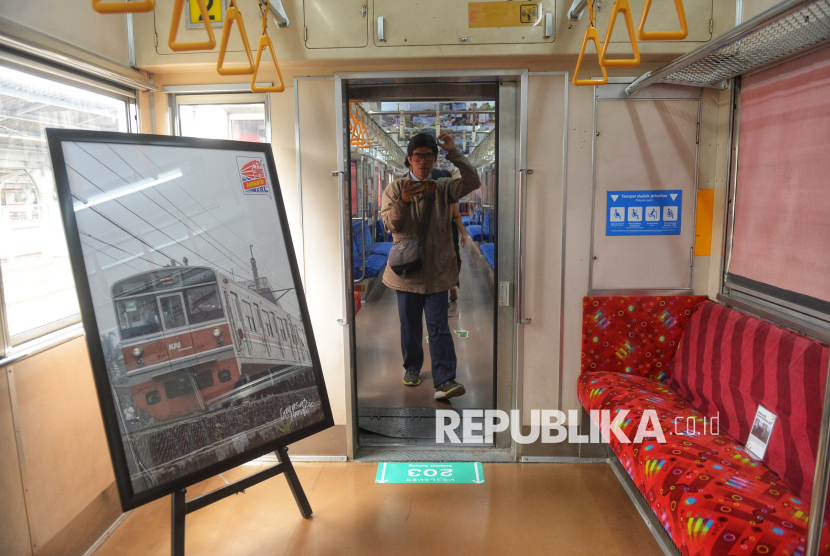 Pengunjung berada di rangkaian KRL Seri 8500 atau juga dikenal sebagai JALITA (Jalan-Jalan Lintas Jakarta) yang dimanfaatkan sebagai Mini Museum di Stasiun Jakarta Kota, Rabu (12/11/2025). Mini Museum yang memanfaatkan rangkaian KRL Seri 8500 atau juga dikenal sebagai JALITA (Jalan-Jalan Lintas Jakarta) ini dihadirkan dalam rangka perpisahan KRL Seri 7000, Seri 8500, dan Seri 203. (FOTO : Republika/Prayogi)