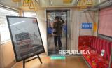 Pengunjung berada di rangkaian KRL Seri 8500 atau juga dikenal sebagai JALITA (Jalan-Jalan Lintas Jakarta) yang dimanfaatkan sebagai Mini Museum di Stasiun Jakarta Kota, Rabu (12/11/2025). (FOTO : Republika/Prayogi)