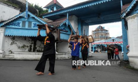 REPUBLIKA.CO.ID, SOLO -- Sejumlah abdi dalem memasang dekorasi janur untuk persiapan acara Jumeneng Nata Bhinayangkare atau upacara penobatan raja baru di Keraton Kasunanan Surakarta Hadiningrat, Solo, Jawa Tengah, Jumat (14/11/2025).