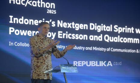President Director of Ericsson Indonesia, Singapore, Philippines, and Brunei Daniel Ode memberikan sambutan dalam acara pengumuman pemenang Hackathon 2025 di Garuda Sparks Innovation Hub, Jakarta, Jumat (14/11/2025). Ajang Hackathon 2025 yang merupakan kolaborasi antara Ericsson, Qualcomm, Komdigi, dan Kemenperin ini bertujuan untuk memperkuat ekosistem inovasi berbasis 5G dan AI di Indonesia serta mendukung terwujudnya visi Indonesia Digital 2045. (FOTO : Republika/Prayogi)