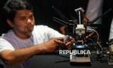 Peserta Hackathon 2025 memamerkan inovasinya dalam acara pengumuman pemenang Hackathon 2025 di Garuda Sparks Innovation Hub, Jakarta, Jumat (14/11/2025). Ajang Hackathon 2025 yang merupakan kolaborasi antara Ericsson, Qualcomm, Komdigi, dan Kemenperin ini bertujuan untuk memperkuat ekosistem inovasi berbasis 5G dan AI di Indonesia serta mendukung terwujudnya visi Indonesia Digital 2045. (FOTO : Republika/Prayogi)