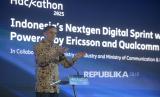 Salah satu finalis mempresentasikan Inovasinya dalam acara pengumuman pemenang Hackathon 2025 di Garuda Sparks Innovation Hub, Jakarta, Jumat (14/11/2025). Ajang Hackathon 2025 yang merupakan kolaborasi antara Ericsson, Qualcomm, Komdigi, dan Kemenperin ini bertujuan untuk memperkuat ekosistem inovasi berbasis 5G dan AI di Indonesia serta mendukung terwujudnya visi Indonesia Digital 2045. (FOTO : Republika/Prayogi)