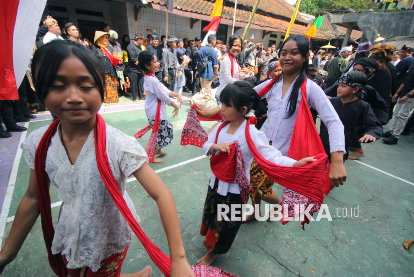 Anak-anak menari pada Festival Cireundeu 2025, di kampung adat Cireundeu di Cimahi, Sabtu (15/11/2025). Kegiatan tahunan ini merupakan upaya pelestarian seni budaya tradisi khusunya diversifikasi pangan. (FOTO : Edi Yusuf)