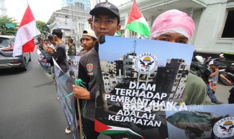 Peserta aksi meminta genosida di Palestina dan Sudan segera dihentikan.