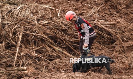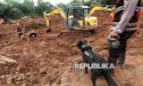 Unit anjing pelacak (k-9) diterjunkan membantu proses pencarian korban longsor di Desa Cibeunying, Majenang, Cilacap, Jawa Tengah, Ahad (16/11/2025). Tim SAR mengerahkan sembilan unit anjing pelacak (K-9) pada hari keempat pencarian korban longsor, dan berhasil menemukan dua korban meninggal dunia serta dua bagian tubuh yang belum teridentifikasi, sehinggga total korban meninggal yang telah ditemukan menjadi 13 orang dan 10 korban masih dalam proses pencarian. (FOTO : ANTARA FOTO/Idhad Zakaria)