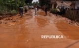 Warga dan relawan membersihkan jalan menuju lokasi longsor yang tertutup lumpur akibat banjir bandang di Desa Cibeunying, Majenang, CIlacap, Ahad (16/11/2025). BPBD akan meminta kepada BMKG untuk melakukan modifikasi cuaca karena hujan deras pada Sabtu (15/11) malam telah memicu banjir bandang di lokasi longsor yang menyebabkan akses jalan, rumah warga dan area persawahan tertimbun lumpur sehingga menyulitkan proses pencarian korban longsor. (FOTO : ANTARA FOTO/Idhad Zakaria)