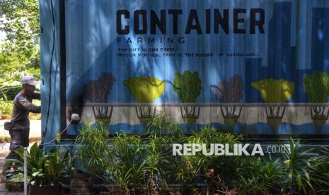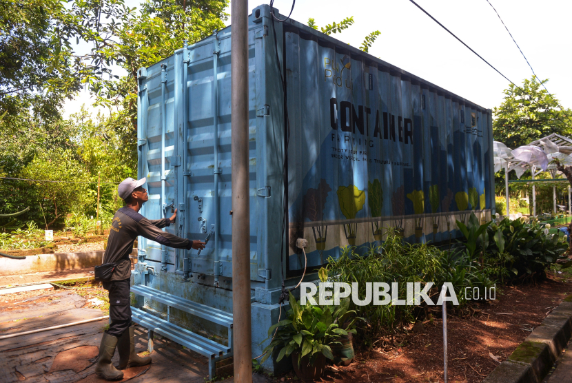Container farming di Agro Edukasi Wisata (AEW) Ragunan, dilengkapi sistem hidroponik, pencahayaan dan kontrol iklim untuk menanam tanaman sepanjang tahun di ruang terbatas, khususnya di perkotaan. (FOTO : Republika/Prayogi)