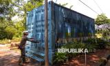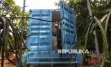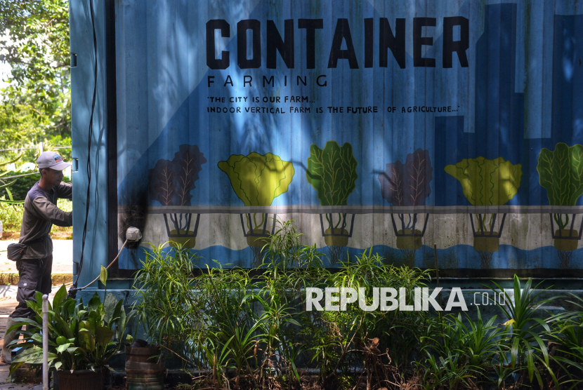 Petugas merawat tanaman yang dibudidayakan dengan metode container farming di Agro Edukasi Wisata (AEW) Ragunan, Jakarta. (FOTO : Republika/Prayogi)