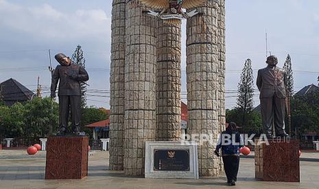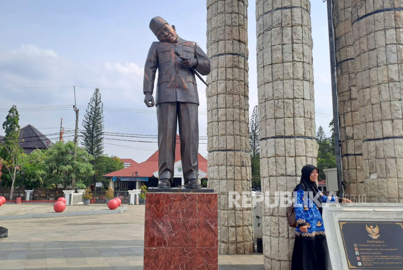 REPUBLIKA.CO.ID, INDRAMAYU -- Patung proklamator yang juga presiden pertama Republik Indonesia Bung Karno miring dan terlihat seperti patah pada bagian leher hingga kepalanya di Alun-alun Indramayu, Senin (17/11/2025).