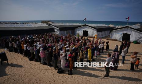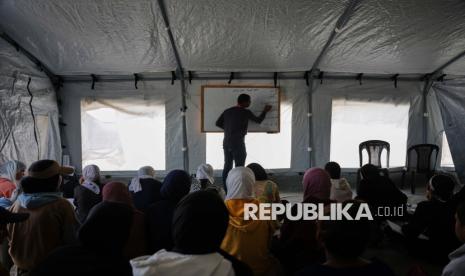 REPUBLIKA.CO.ID, GAZA -- Siswa Palestina bersiap mengikuti pelajaran di dalam tenda darurat yang didirikan di Khan Younis, Jalur Gaza, Rabu (12/11/2025).