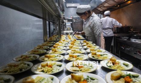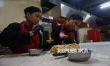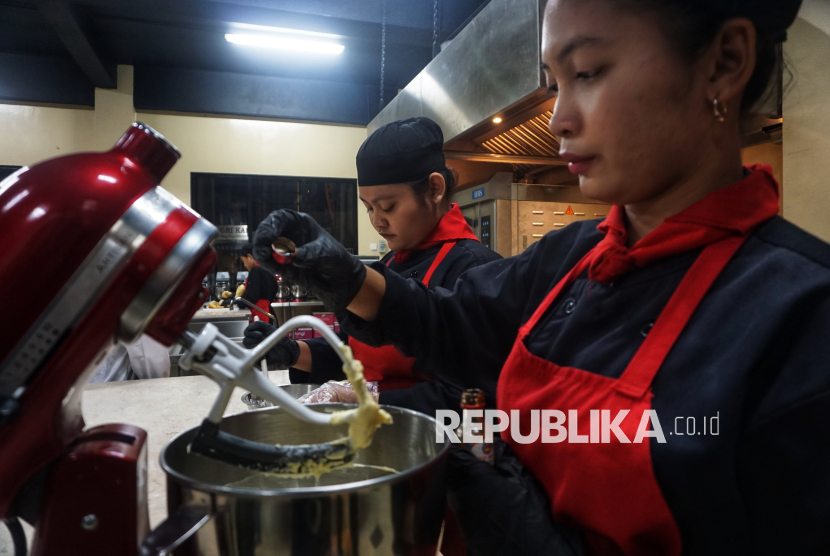 Siswa SMK PGRI 2 Kudus menyiapkan makanan di Jiva Bestari, Kudus, Jawa Tengah, Selasa (18/11/2025). Jiva Bestari merupakan teaching factory di SMK PGRI 2 Kudus untuk kompetensi keahlian Kuliner/Tata Boga. (FOTO : Republika/Prayogi)