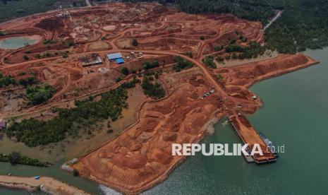 Foto udara lokasi aktivitas pemanfaatan ruang laut oleh PT. Dwimitra Multiguna Sejahtera seluas 5,8 hektare di Kecamatan Lasolo, Kabupaten Konawe Utara, Sulawesi Tenggara, Rabu (19/11/2025). Kementerian Kelautan dan Perikanan (KKP) melalui Direktorat Jenderal Pengawasan Sumber Daya Kelautan dan Perikanan (PSDKP) memberhentikan sementara pemanfaatan ruang laut tiga perusahaan di Sulawesi Tenggara karena tidak memiliki izin persetujuan kesesuaian kegiatan pemanfaatan ruang laut (PKKPRL) serta pelanggaran izin reklamasi yang berpotensi menimbulkan kerusakan lingkungan wilayah pesisir. (FOTO : ANTARA FOTO/Andry Denisah)