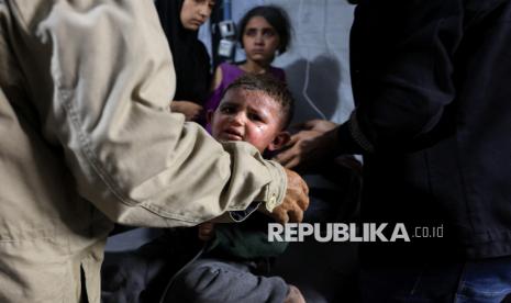Seorang anak Palestina yang terluka menunggu untuk mendapatkan perawatan di Rumah Sakit Al-Shifa setelah tentara Israel melancarkan serangan di berbagai wilayah Kota Gaza yang melanggar gencatan senjata pada Rabu (19/11/2025). Serangan Israel mengakibatkan sejumlah warga Gaza syahid termasuk anak-anak. (FOTO : Ayman Majed Harb Alhisi/Anadolu via Reuters)