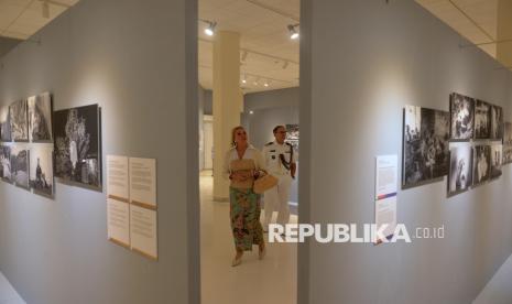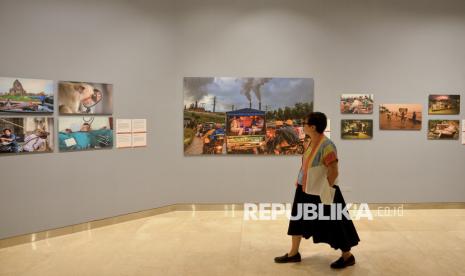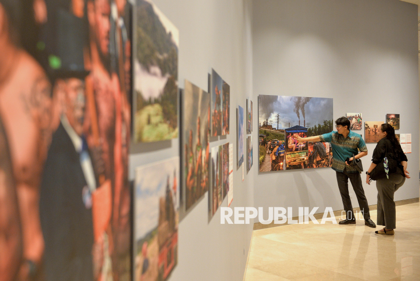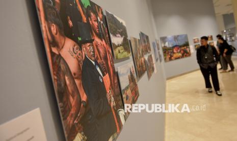 Pengunjung mengamati karya pameran fotografi World Press Photo (WPP) 2025 di Pusat Kebudayaan Belanda Erasmus Huis, Jakarta, Kamis (20/11/2025). Pameran yang digelar hingga 20 Desember 2025 tersebut menampilkan 146 karya foto jurnalistik dan dokumenter pemenang kontes WPP 2025 dengan menyoroti sejumlah isu penting di dunia, seperti krisis iklim, kebebasan pers, hingga konflik dunia. (FOTO : Edwin Putranto/Republika)