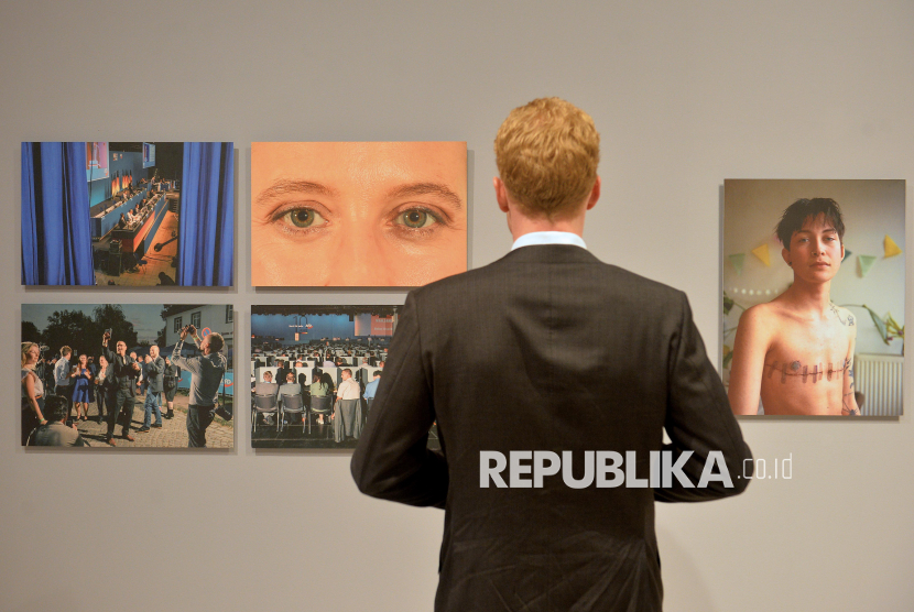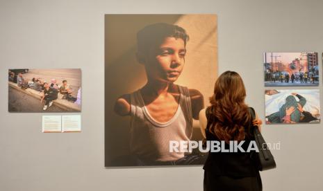 REPUBLIKA.CO.ID, JAKARTA -- Pengunjung mengamati karya pameran fotografi World Press Photo (WPP) 2025 di Pusat Kebudayaan Belanda Erasmus Huis, Jakarta, Kamis (20/11/2025).