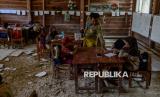 Sebanyak 23 siswa dan satu guru yang mengajar di daerah terpencil Kabupaten Pandeglang tersebut hanya memiliki satu ruang belajar yang rusak parah untuk menampung siswa dari kelas satu hingga enam.